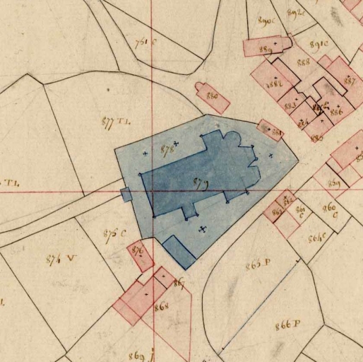 L'ancien cimetière entourant l'église. Extrait du cadastre de 1812, section F 3 (A.D. Finistère, 3 P 19)Immatriculation