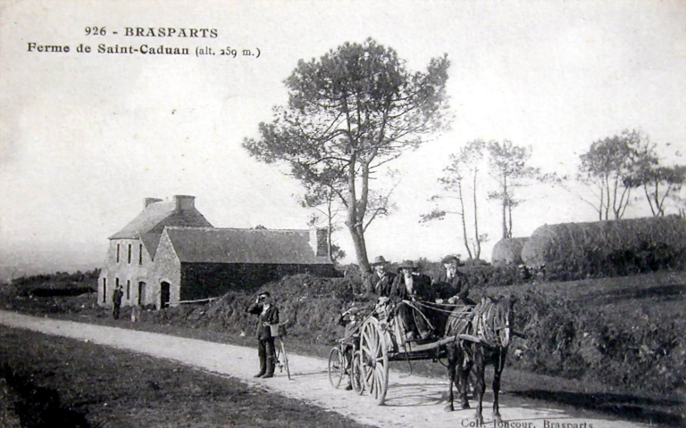 Saint-Caduan : ancienne ferme (milieu 19e siècle). Carte postale, vers 1910 (A.D. Finistère, 2 Fi 16)Immatriculation