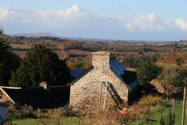 Vue à partir de Kersabelliet, vers l'ouest avec, au fond, le Menez HomImmatriculation