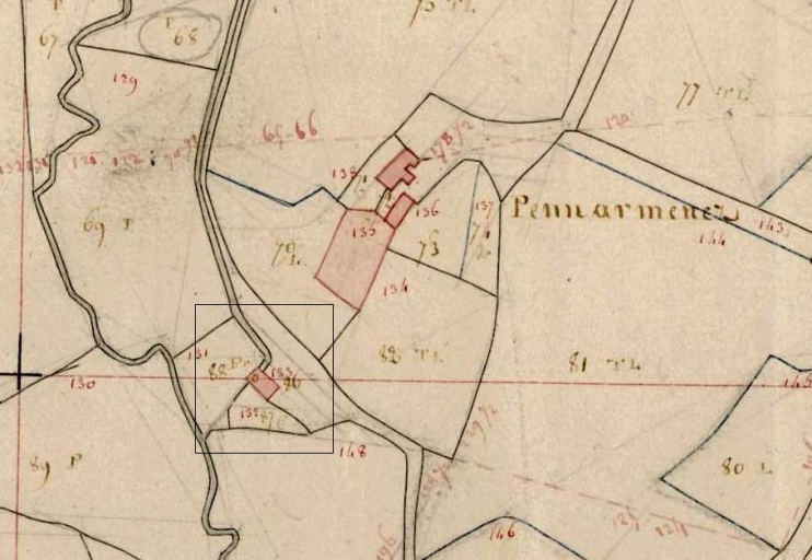 Le moulin de Doulven en 1812. Extrait du cadastre, section G 1 (A.D. Finistère, 3 P 19)Immatriculation