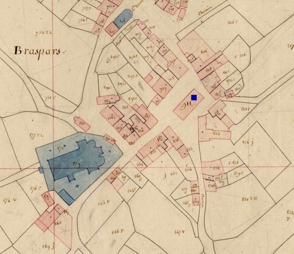 Emprise au sol des premières halles. Extrait du cadastre de 1812, section F 3 (A.D. Finistère, 3 P 19)Immatriculation