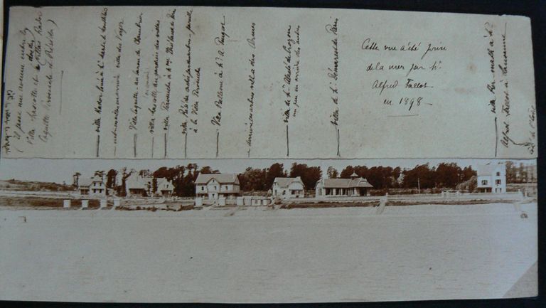 Panorama annoté des villas en front de mer à Morgat en 1898Immatriculation