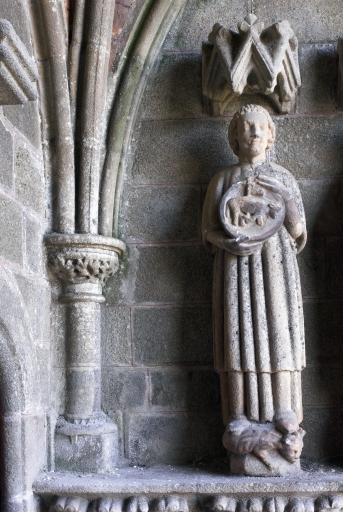 Ensemble de 4 statues : Saint Pierre ; Vierge (?) ; Saint diacre ; Saint (?), et d'une tête,
