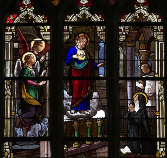 Verrière de la baie 3 : vue rapprochée de l'apparition du Sacré-coeurImmatriculation