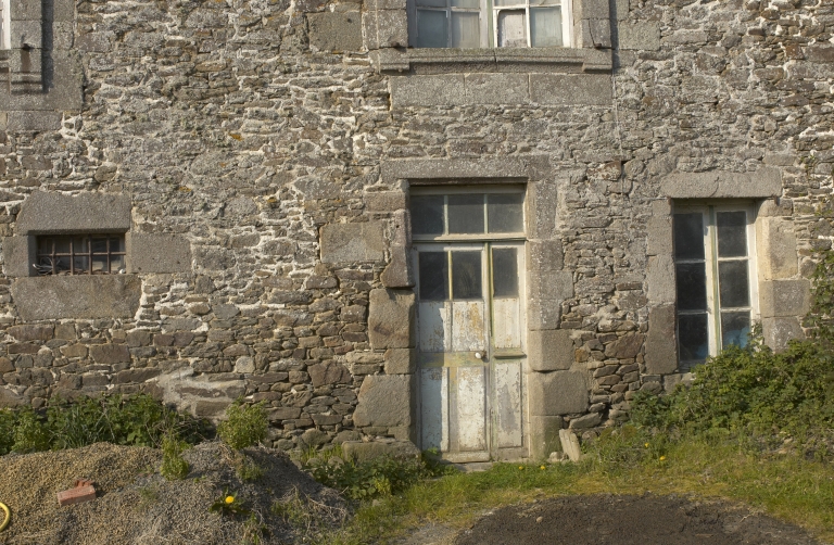 Logis 1, façade est, détail, rez-de-chaussée, porteImmatriculation