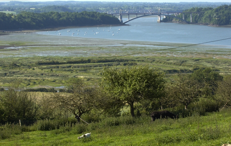 Paysage de Rance pris du Mont-Gareau, au premier plan le camp vikingImmatriculation