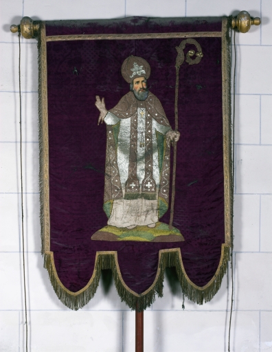 Bannière de procession paroissiale : Saint Martin de Tours, Christ en croix,