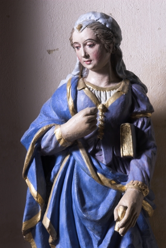 Statue sur culot : Sainte Catherine d'Alexandrie (?), église paroissiale Saint-Hermeland (Saint-Erblon),