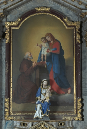 Tableau d'autel : Don du Sacré Coeur par la Vierge et l'Enfant à saint Hermeland,