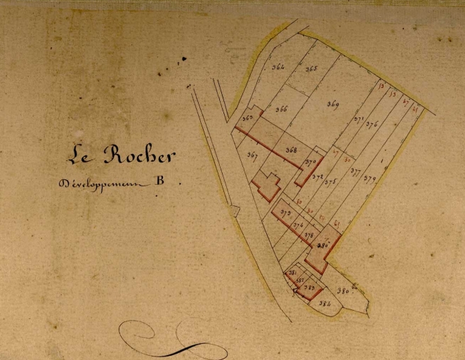 Développement du Rocher sur le cadastre de 1849Immatriculation