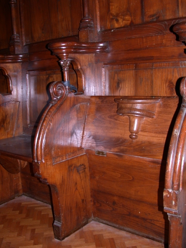 Décor de choeur : lambris de demi-revêtement, 2 bancs de choeur, 2x4 stalles, 2x3 stalles,