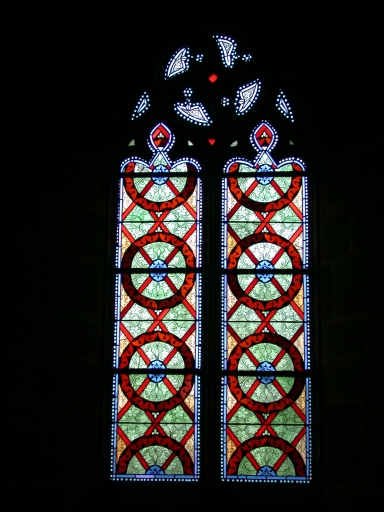 Verrière à personnages de la baie 0 : Saint Nicolas de Bari, Vierge à l'Enfant, Saint Joseph, Sainte Marie-Madeleine et verrières décoratives,