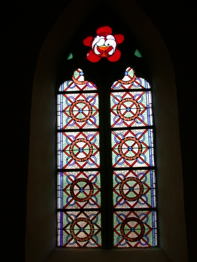 Verrière à personnages de la baie 0 : Saint Nicolas de Bari, Vierge à l'Enfant, Saint Joseph, Sainte Marie-Madeleine et verrières décoratives,