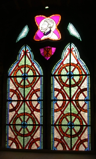 Verrière à personnages de la baie 0 : Saint Nicolas de Bari, Vierge à l'Enfant, Saint Joseph, Sainte Marie-Madeleine et verrières décoratives,