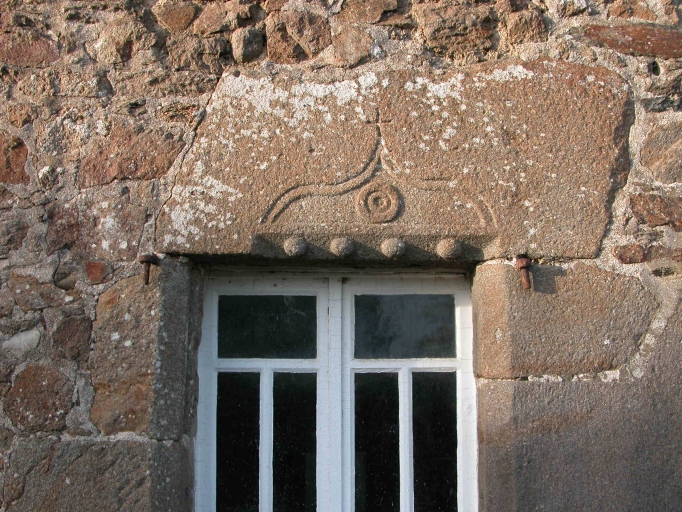Détail, baie, chanfrein décoré de boules, accolade sommée d'une croixImmatriculation