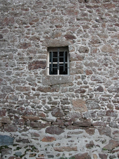 Pignon sur rue, détail, baie avec barreaux formant un monogrammeImmatriculation