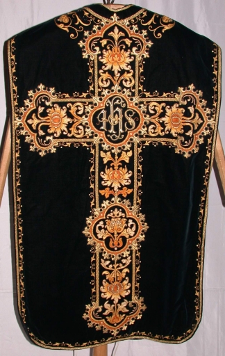 Ornement noir 2 : chasuble, bourse de corporal, étole, manipule, voile de calice,