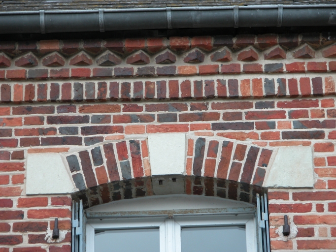 Détail, décor génoise en briqueImmatriculation