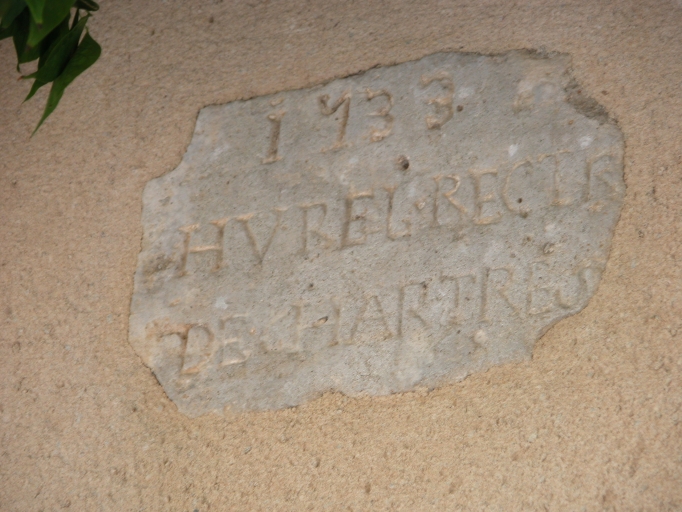 Façade antérieure, détail, inscription et date portéeImmatriculation