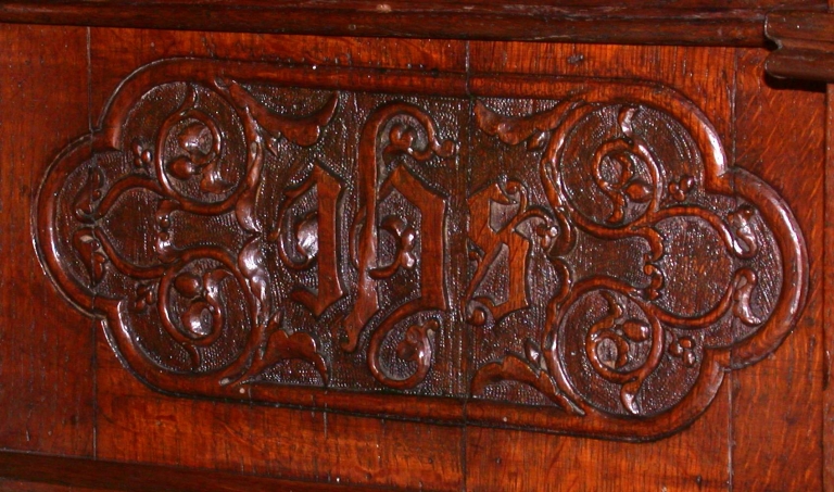 Décor sculpté sous le tabernacle : I.H.S.Immatriculation