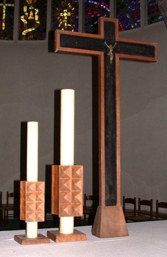Garniture d'autel : croix et 6 chandeliers,