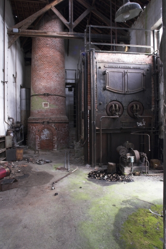 Chaufferie : la chaudière Velli et Lescure à Amiens et la base de cheminée.Immatriculation