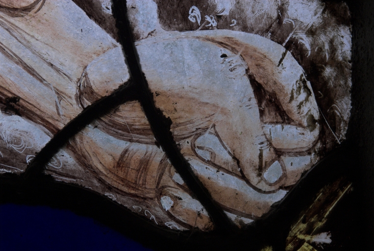 Verrière (maîtresse-vitre) : Le bon larron crucifié,