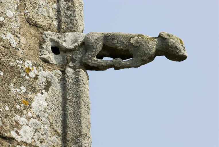 Porche sud : détail d'une figure de chien sculptée en ronde-bosse sur l'angleImmatriculation
