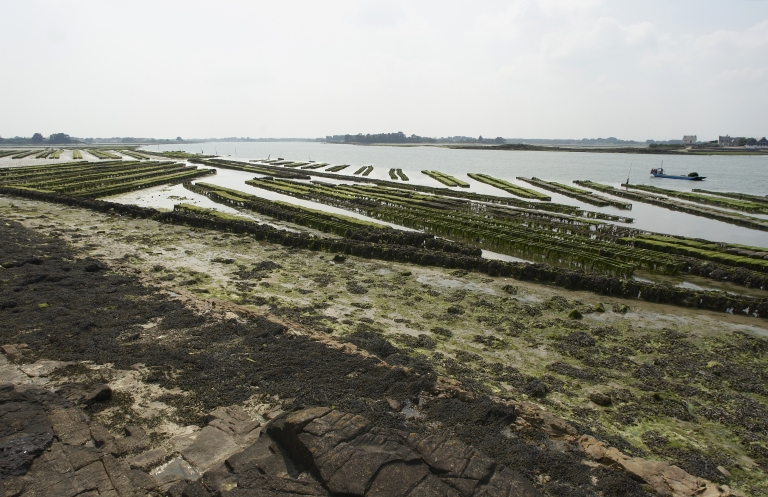 Beg Lannec, parcs à huîtres. Elevage en poches sur tables immergées, vue généraleImmatriculation