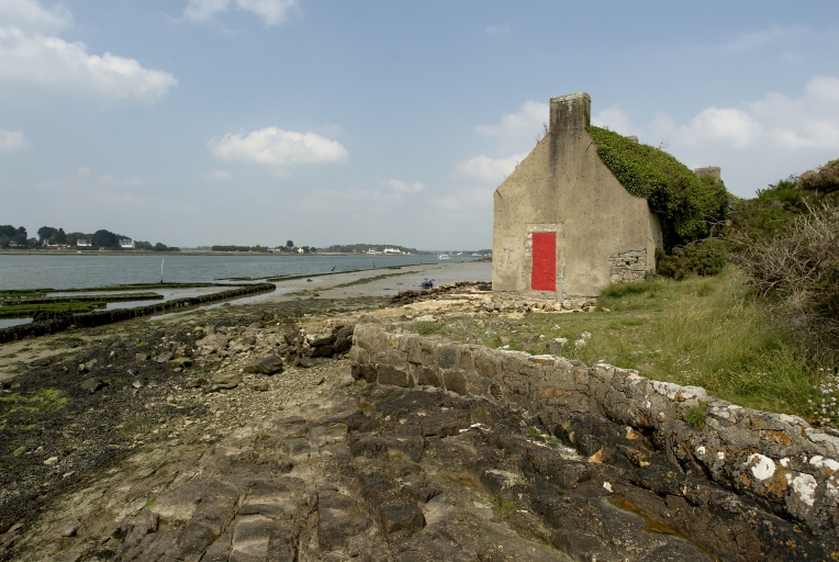 Beg Lannec, ancienne maison de gardien et bâtiment d'exploitation associés (?), terre-plein, fin 19e siècle, parcs à huîtres, vue générale nord-estImmatriculation