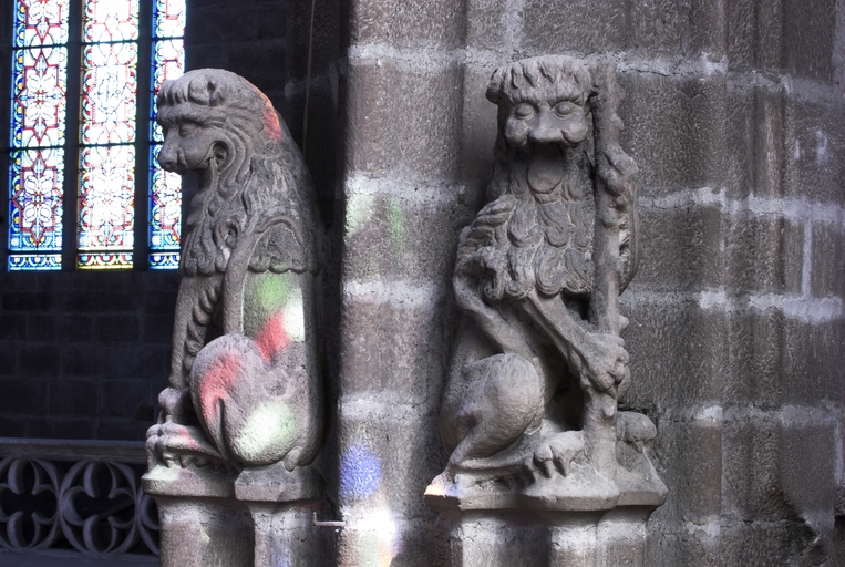 Vue prise de la galerie : lions couronnant les piles du transeptImmatriculation