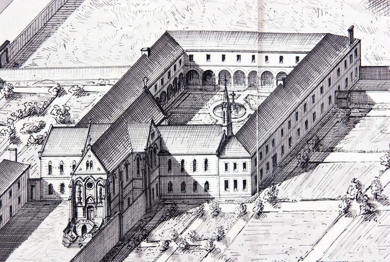 Vue perspective de l'ensemble du monastère des Dames carmélites, 1878 par Fraboulet, détail. Fonds privé.Immatriculation