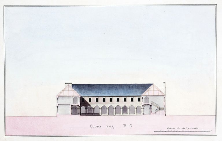 Coupe sur l'aile sud du monastère par Fraboulet, 1878. Fonds privé.Immatriculation