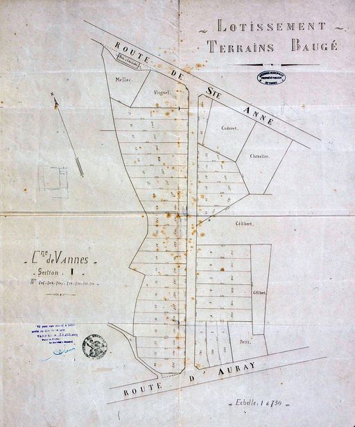 Plan du lotissement Baugé daté du 21 avril 1925. AM Vannes 1O221.Immatriculation