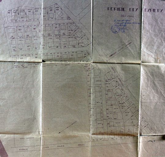 Plan du lotissement communal Bécel, 1952. AM Vannes 1O221.Immatriculation