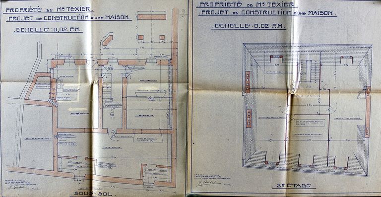 Plans du sous-sol et du 2è étage par Guy Caubert de Cléry, 19 septembre 1932. AM Vannes 5I162.Immatriculation