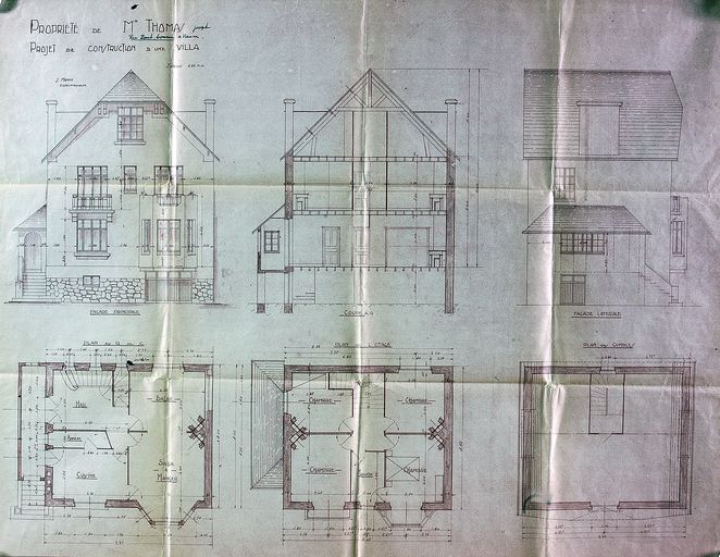 Projet de construction d'une villa pour Mr Thomas, par Morin entrepreneur : plans et coupes. AM Vannes 5I162.Immatriculation