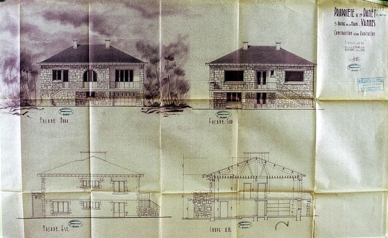 Elévation de la maison Danet par C. Perrin, 1954. AM Vannes 1G59.Immatriculation