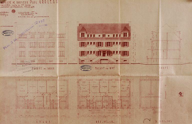 Plan de l'immeuble Groleau par Léon Belley, 1948. AM Vannes 1G59.Immatriculation
