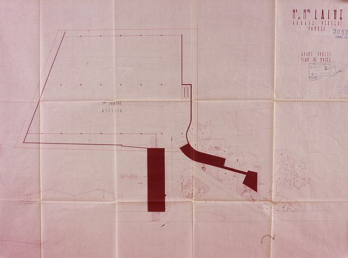 Avant-projet et plan de masse du garage par Yves Guillou, 1958. AM Vannes 1G59.Immatriculation