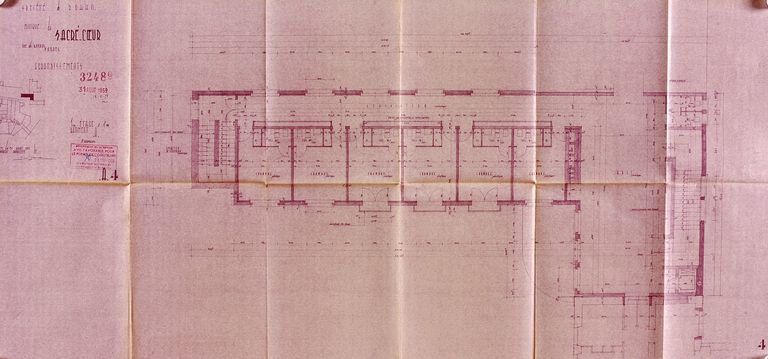 Projet d'agrandissement de la clinique, bâtiment A plan du 1er étage par Guy Caubert de Cléry, 31 août 1959. AM Vannes 1G59.Immatriculation