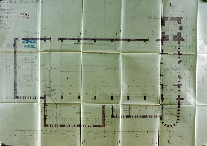 Plan de l'église Saint-Pie X par G. Caubert de Cléry, 16 août 1956. AM, Vannes 1G59.Immatriculation