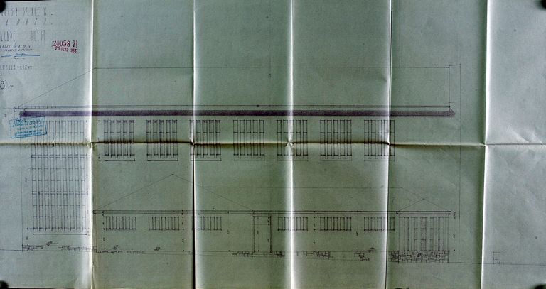 Façade ouest de l'église Saint-Pie X par G. Caubert de Cléry, 16 août 1956. AM Vannes 1G59.Immatriculation