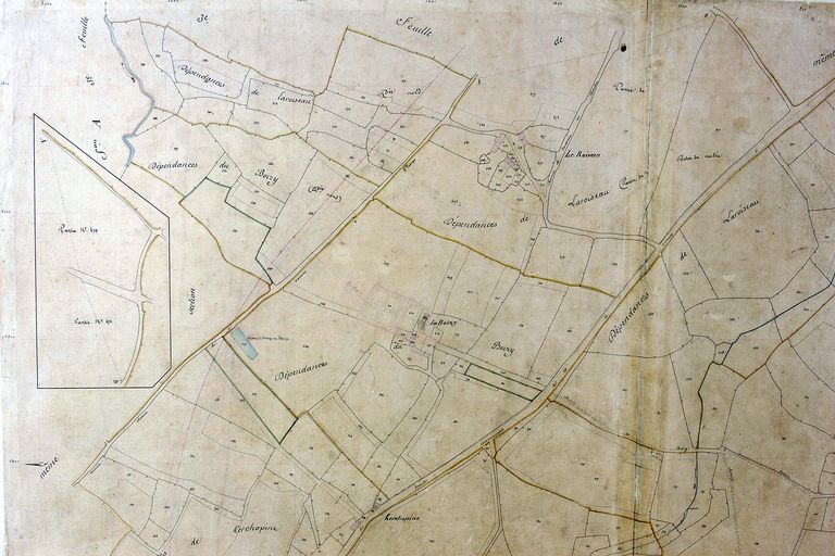 Plan cadastral 1844 : section I Bondon 2e feuille, écart de Laroiseau. AM Vannes 21Fi.Immatriculation