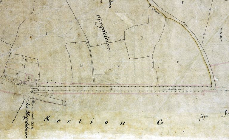 Plan cadastral 1844 : section I3, détail. AM Vannes 21FI.Immatriculation