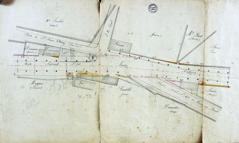 Départ de la route de Sainte Anne. Plan d'alignement de la place de La Madeleine, 15 mars 1878. AM Vannes 1 O 216.Immatriculation