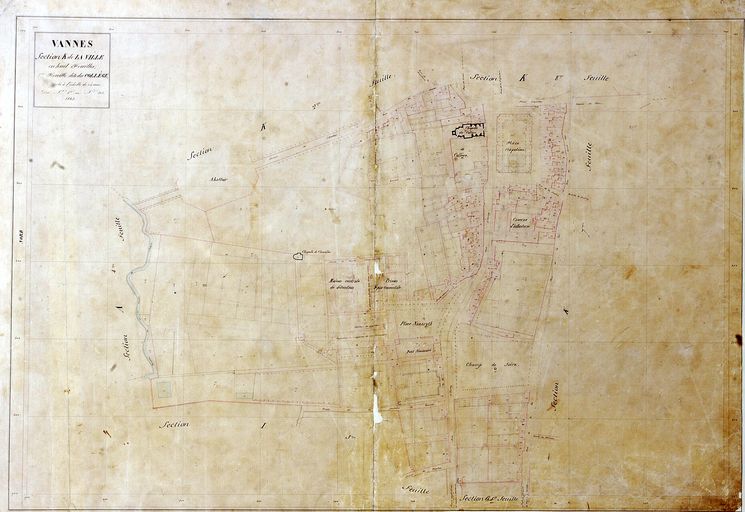 Plan parcellaire cadastral de 1844 : section K1 feuille du collège. AM Vannes 21Fi.Immatriculation