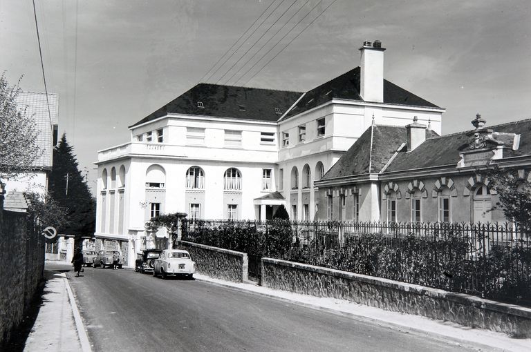 Clinique Franco, vue prise du sud-est, vers 1960. Album des constructions de l'entreprise Groleau. AD Morbihan 22Fi.Immatriculation