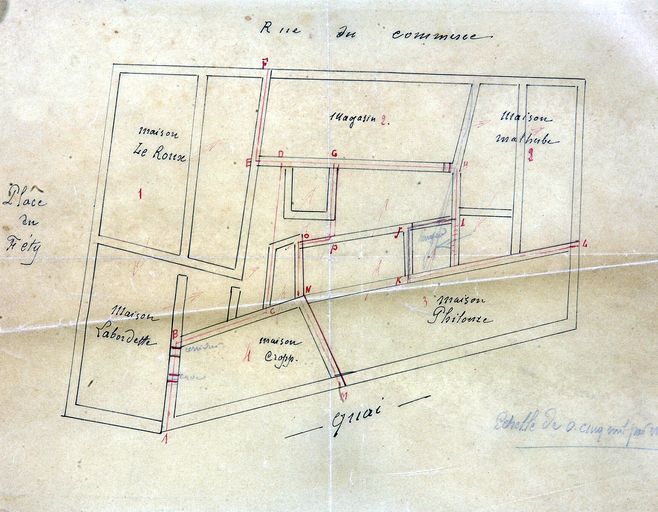 Plan masse de l'ilôt Billy dressé pour l'agrandissement de l'hôtel Bourdonnaye pour M. Philouze par Joseph Caubert de Cléry en 1906. AD Morbihan 149 J 376.Immatriculation