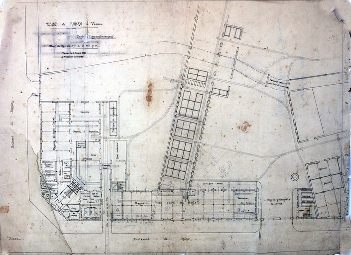 Projet d'agrandissement. Plan dressé par Caubert, 27 mars 1920. AD Morbihan 149 J 298.Immatriculation